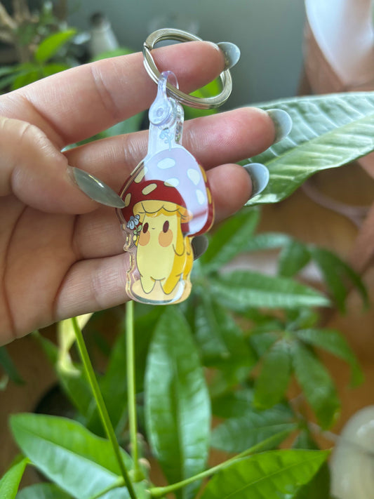 Kawaii Mushroom Keychain – Flower Mushroom Acrylic Charm – Froggiebums Cottagecore Accessory