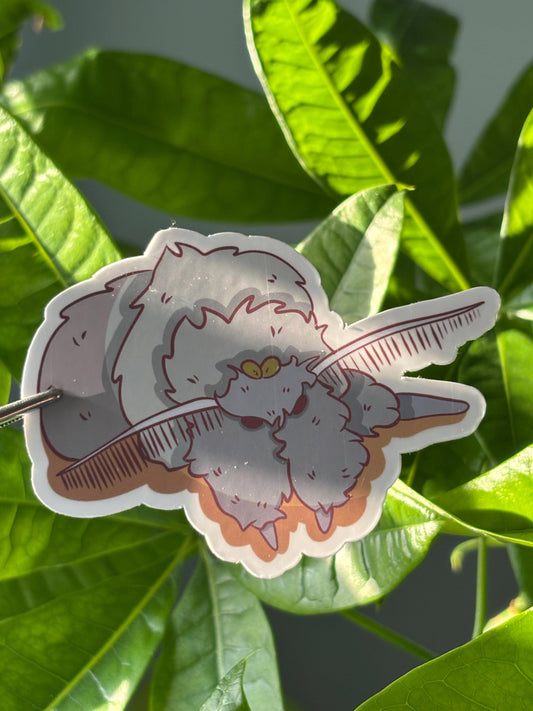 Fuzzy White Moth Sticker – Cute Vinyl Waterproof Insect Art