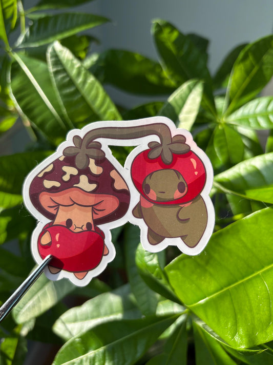 Frog and Mushroom Tomato Hat Sticker – Waterproof Vinyl Decal