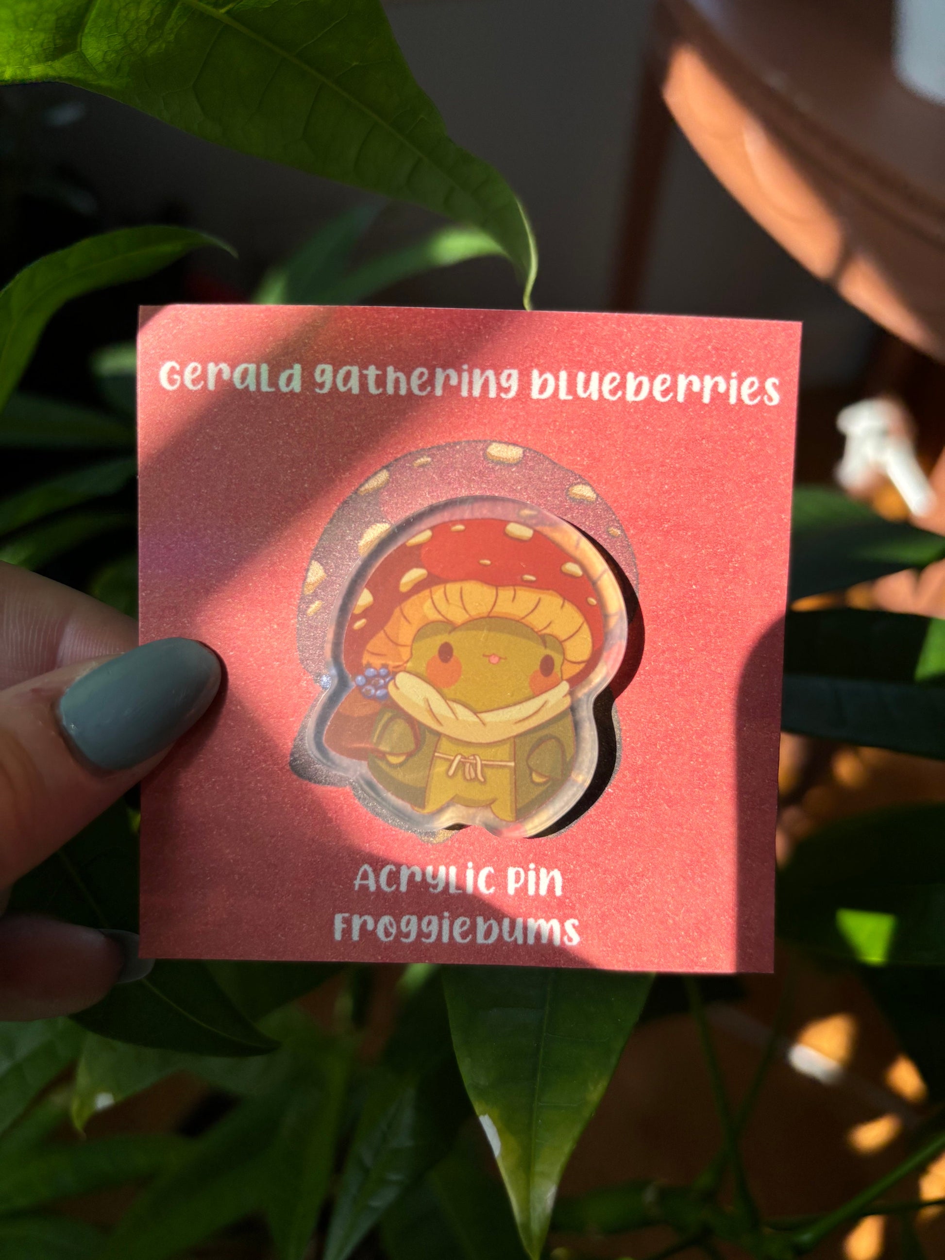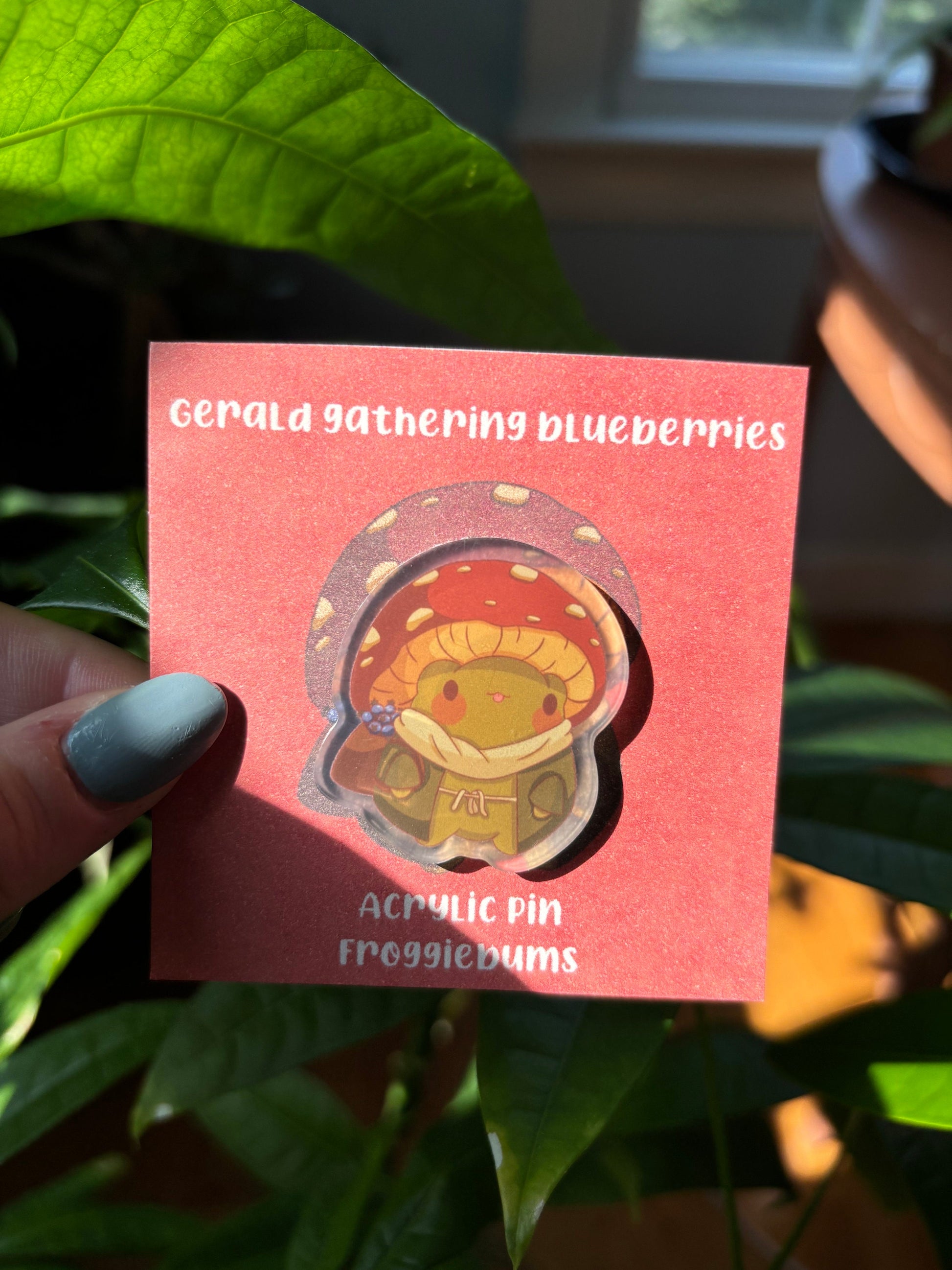 Frog with Mushroom Hat Acrylic Pin – Nature Lover Gift